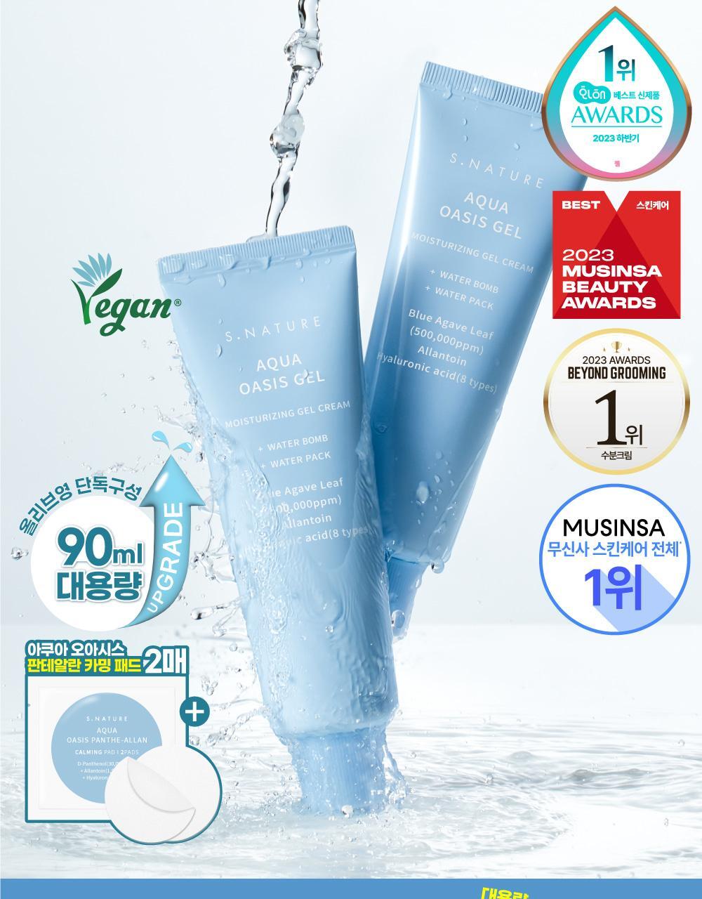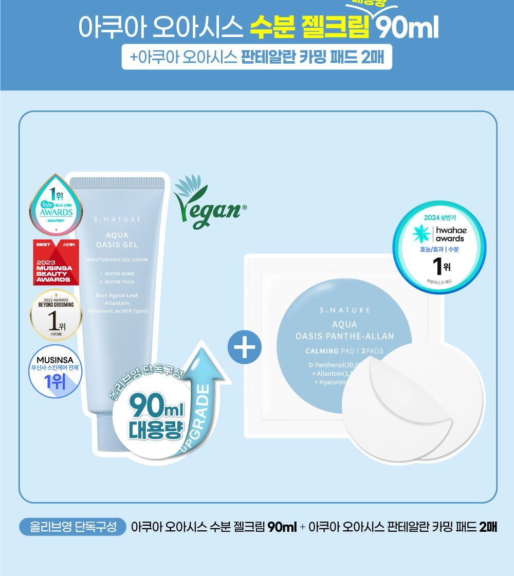 《Olive young連線》S.NATURE Aqua Oasis Gel Moisturizing Gel Cream 90mL+pads*2